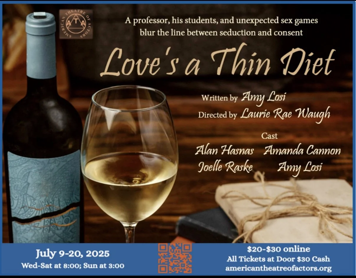 She also portrayed Catharine in Love’s a Thin Diet . This premiered at the Beckmann Theatre this past July, and will be published in October by Next Stage Press!